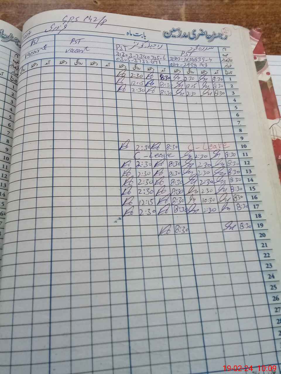 | CNIC | Full Name | Designation | R/C | Absence during last cal. month |