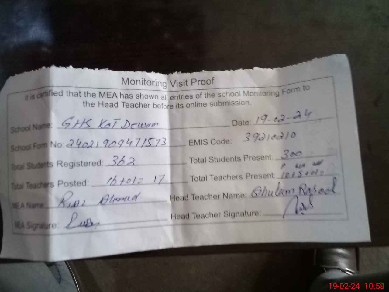 | EMIS Code: 39210210 | Name of School: GHS KOT DEWAN PO PAKPATTAN | |||
