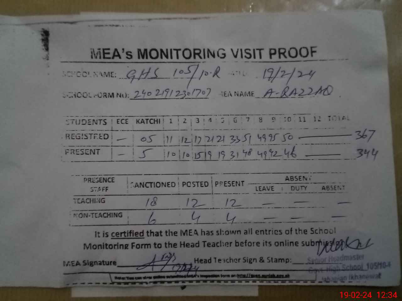 | EMIS Code: 36440039 | Name of School: GHS 105/10-R, JAHANIAN | |||