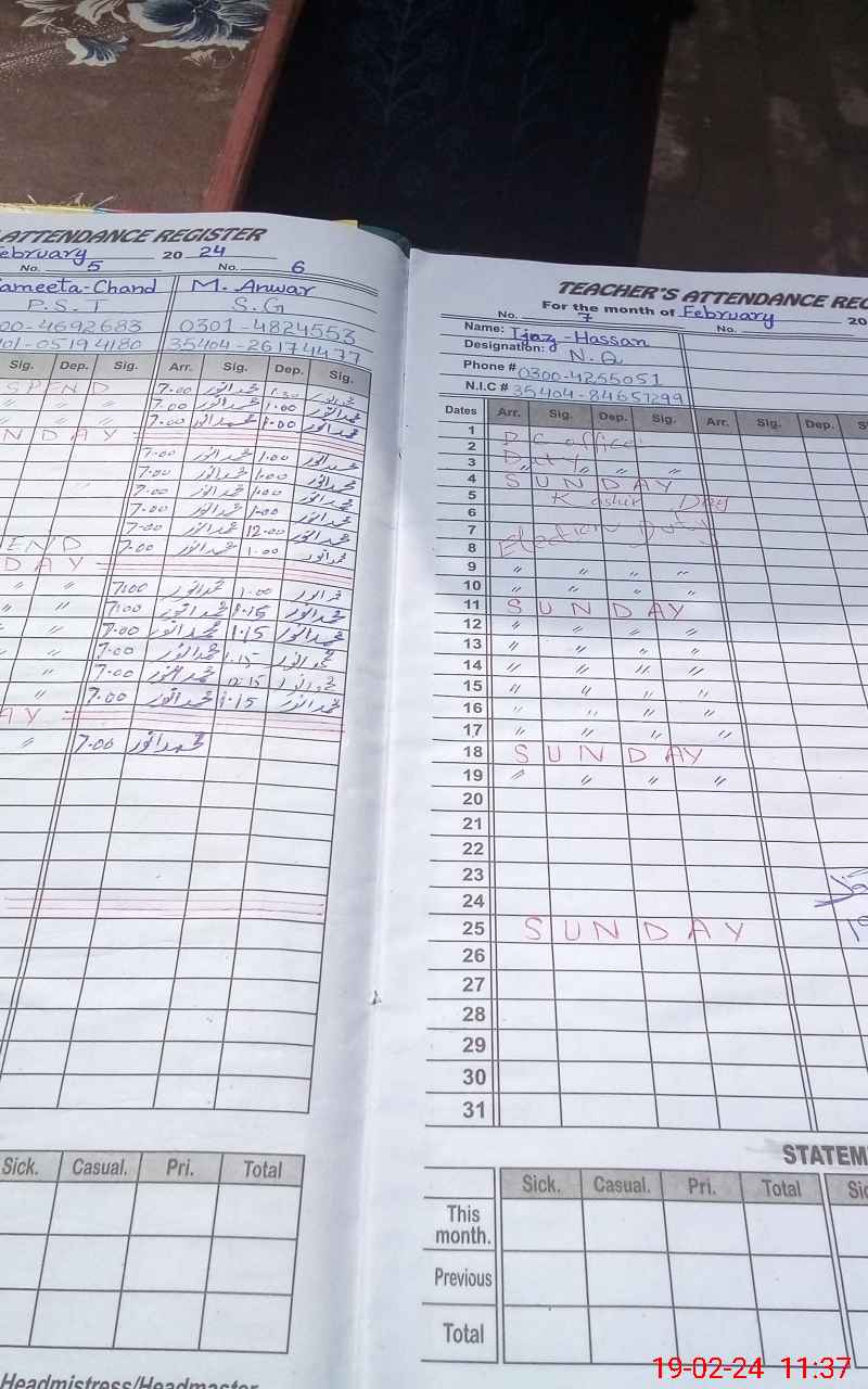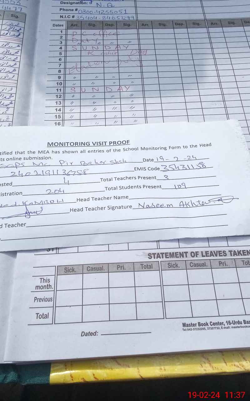 | Name: NA**** AK**** Designation: (School Headmaster's/Headmistress's) PST Phone/Cell Number: 03**** |
