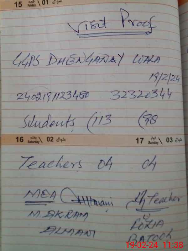 | EMIS Code: 32320344 | Name of School: GGPS DHENGANAY WALA | |||