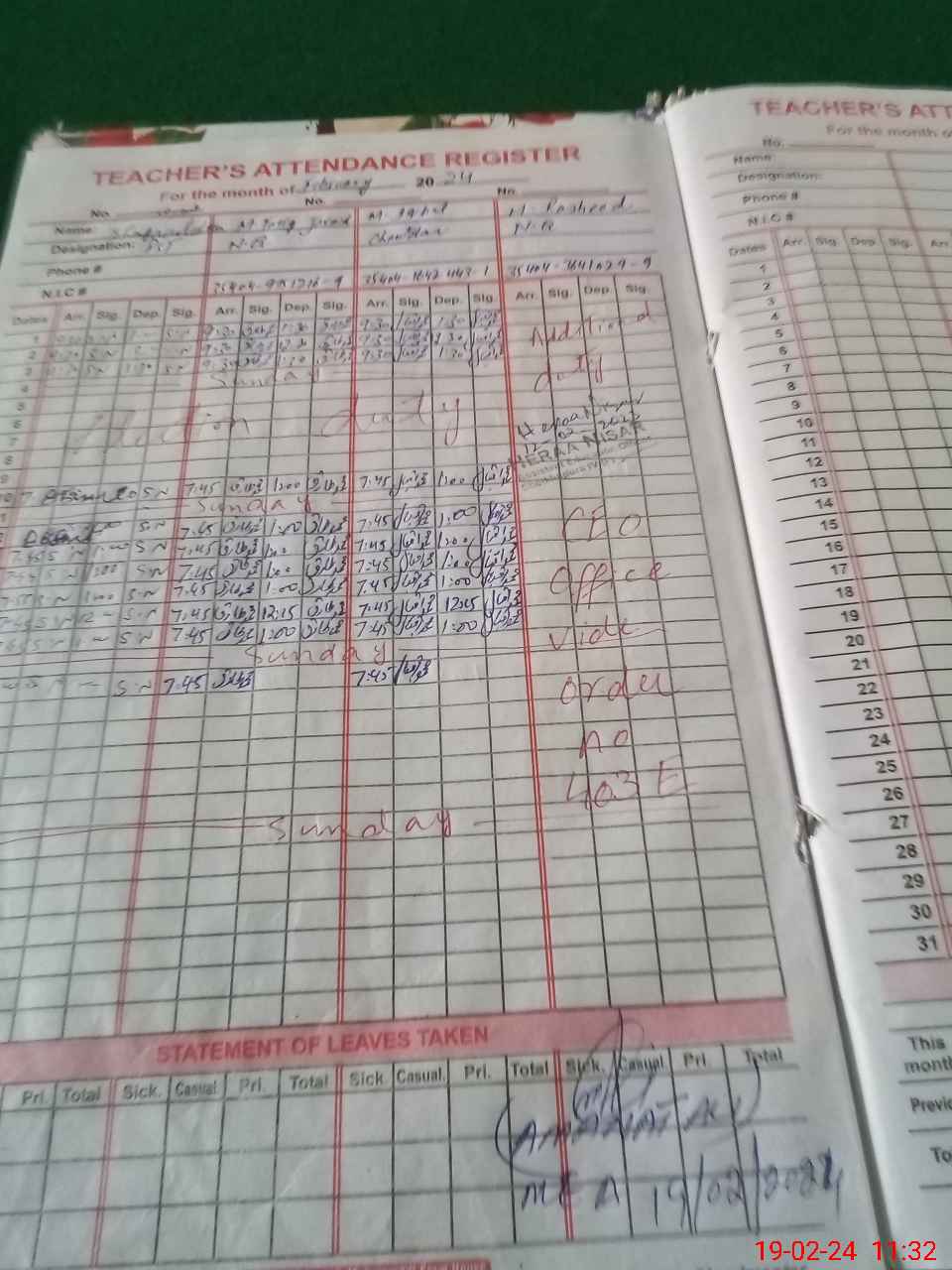 | 35**** | Mu**** Ra**** | NIBE QASID | 0 | 0 | 30 | 0 | 0 | 0 | 0 | 0 | 0 | Absent (Un-Authorized) | |