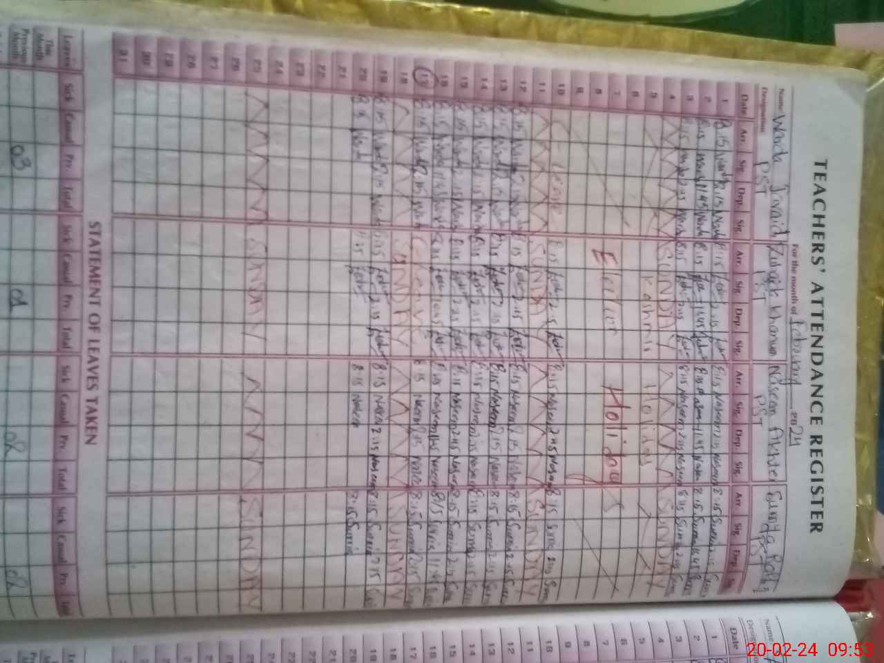 | Leave | Duty | Absent | Maternity | Medical | Ex- Pak |