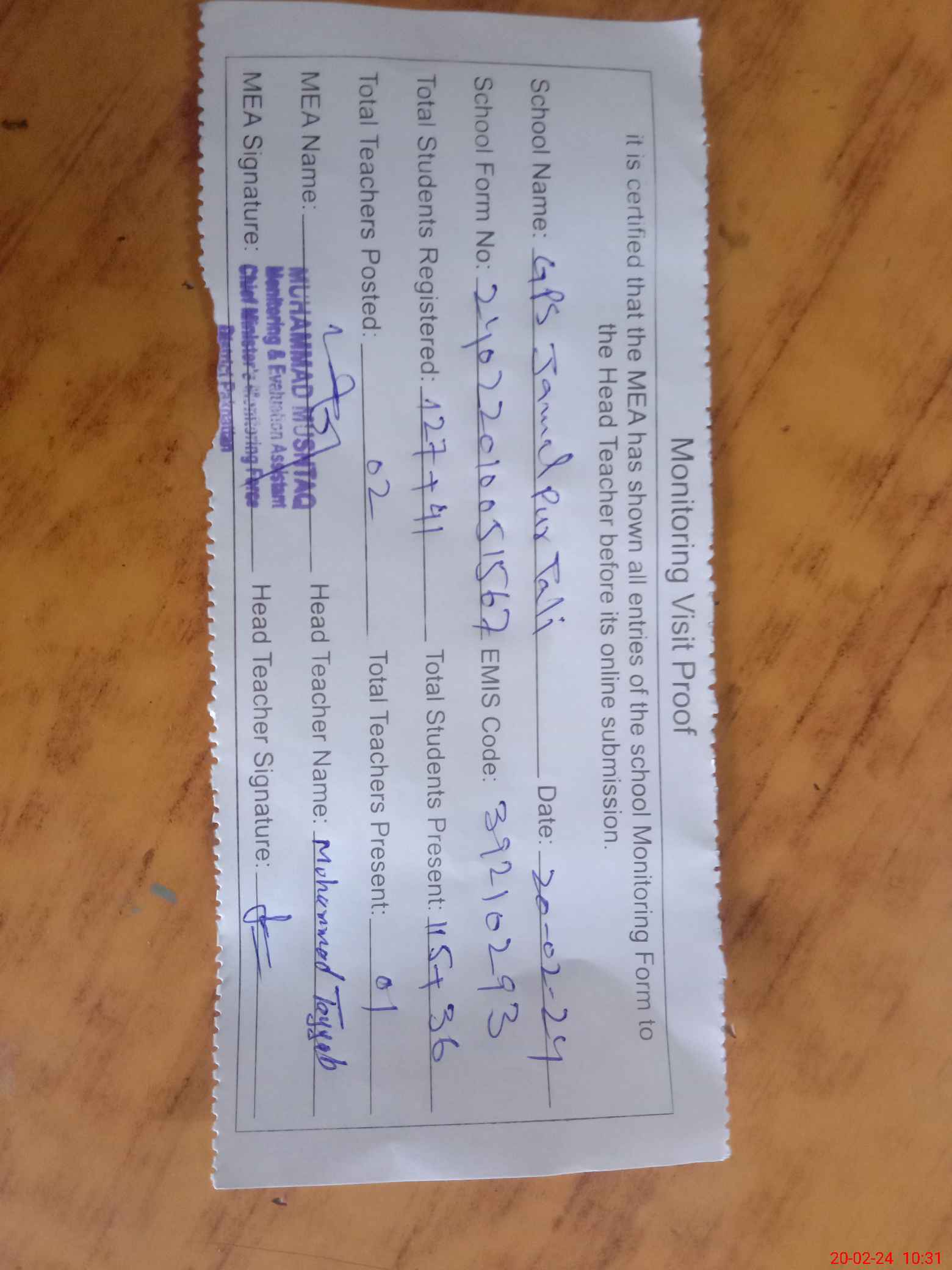 | EMIS Code: 39210293 | Name of School: GPS JAMAL PUR TALI | |||
