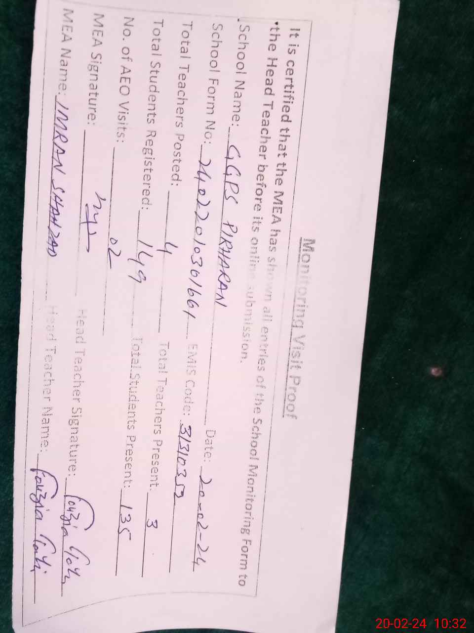 | EMIS Code: 31310352 | Name of School: GGPS PIRHARAN | |||