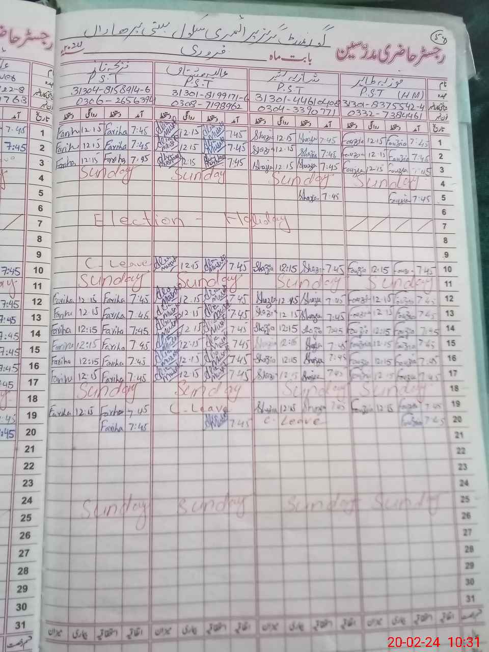 | Name: FO**** TA**** Designation: (School Headmaster's/Headmistress's) PST Phone/Cell Number: 03**** |