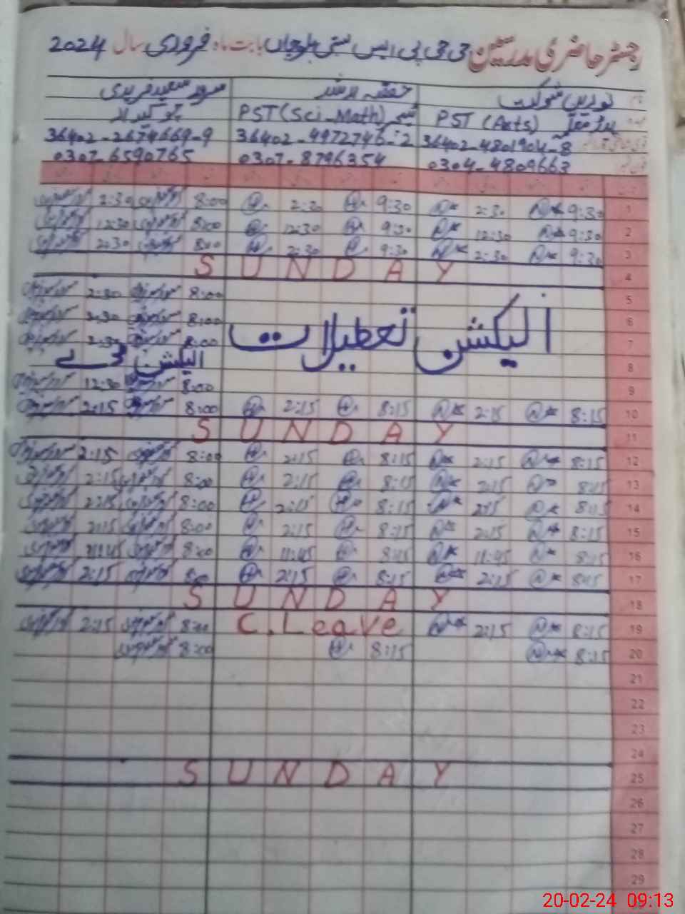 | Name: No**** sh**** Designation: (School Headmaster's/Headmistress's) PST Phone/Cell Number: 03**** |