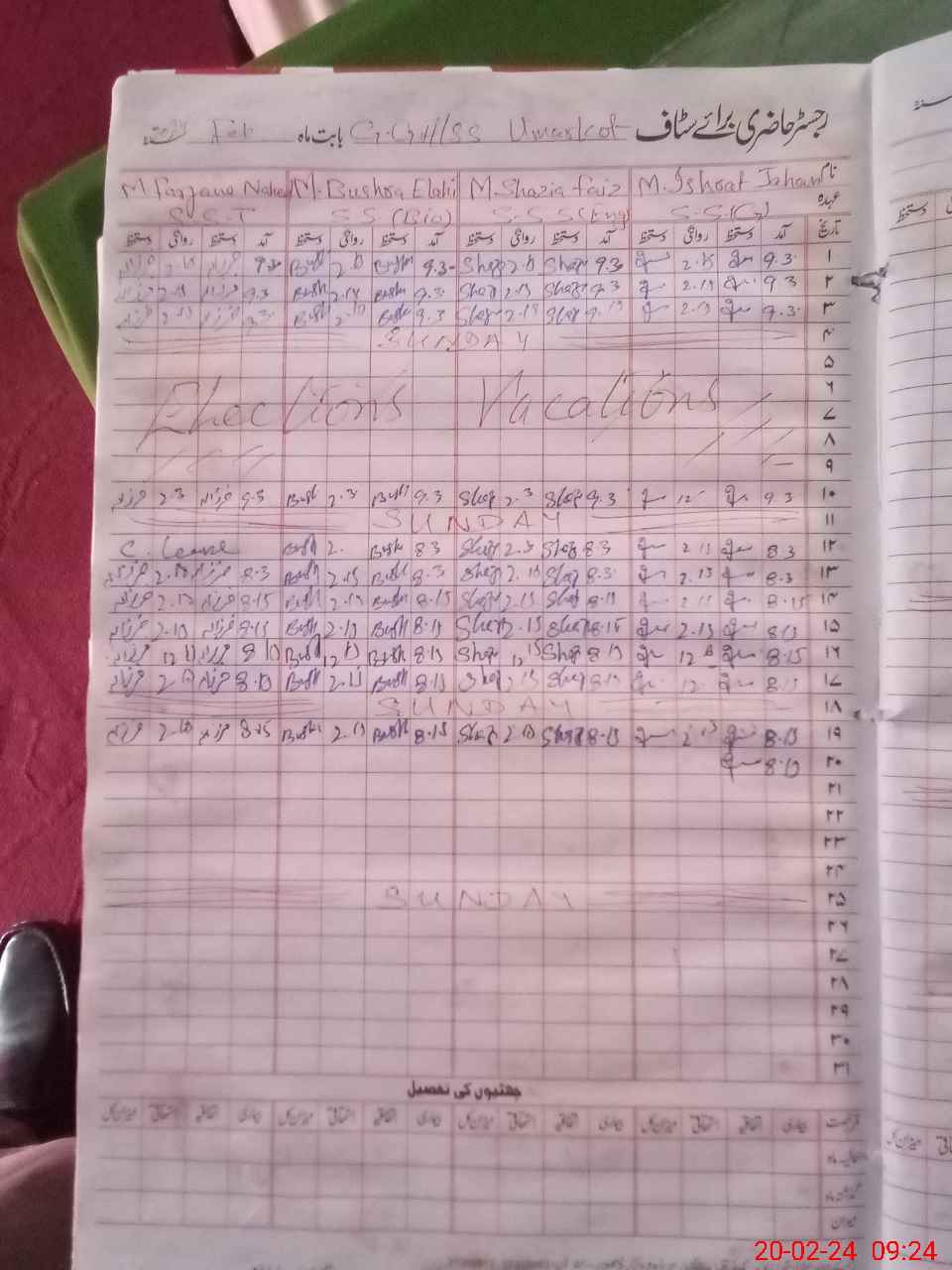 | CNIC | Full Name | Designation | R/C | Absence During Last Calender Month |