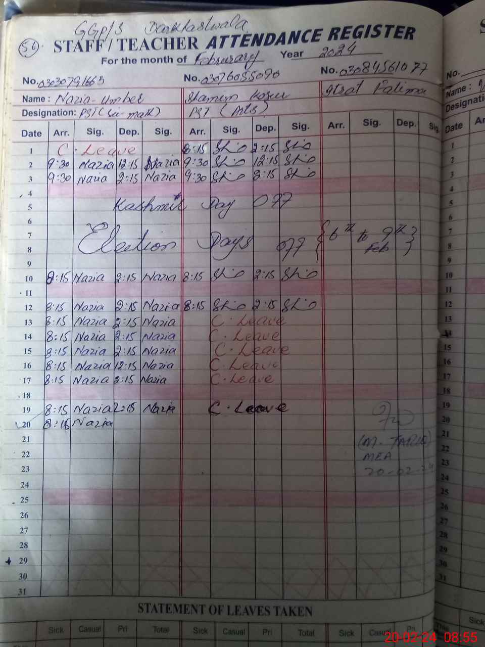 | 36**** | Sh**** Ko**** | PST | Regular | 0 | 0 | 0 | 0 | 0 | 0 | 0 | 0 | 0 | Absent (Un-Authorized) |