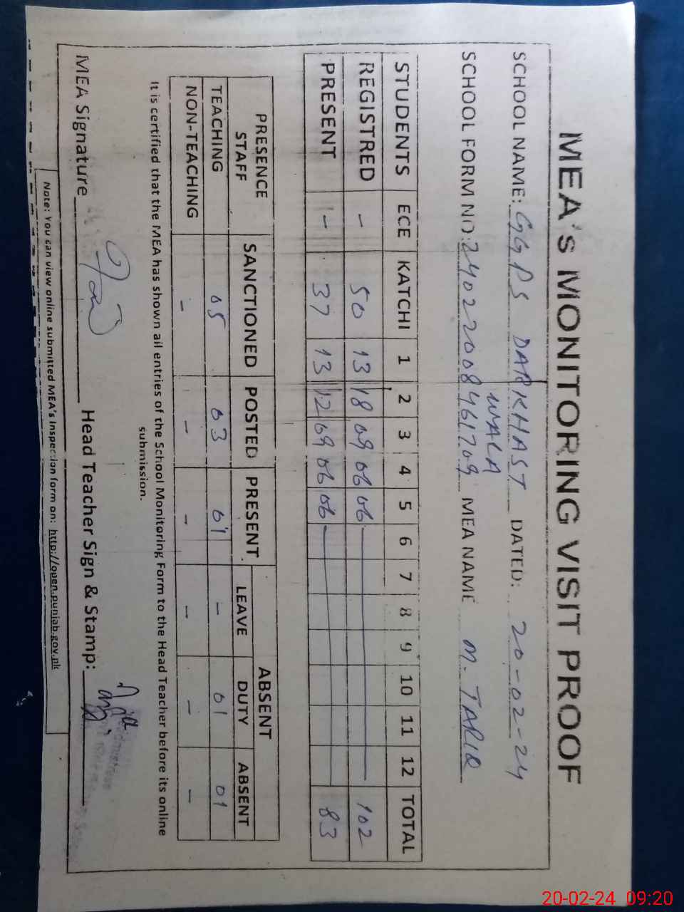 | EMIS Code: 36410367 | Name of School: GGPS DARKHAST WALA, KABIRWALA | |||