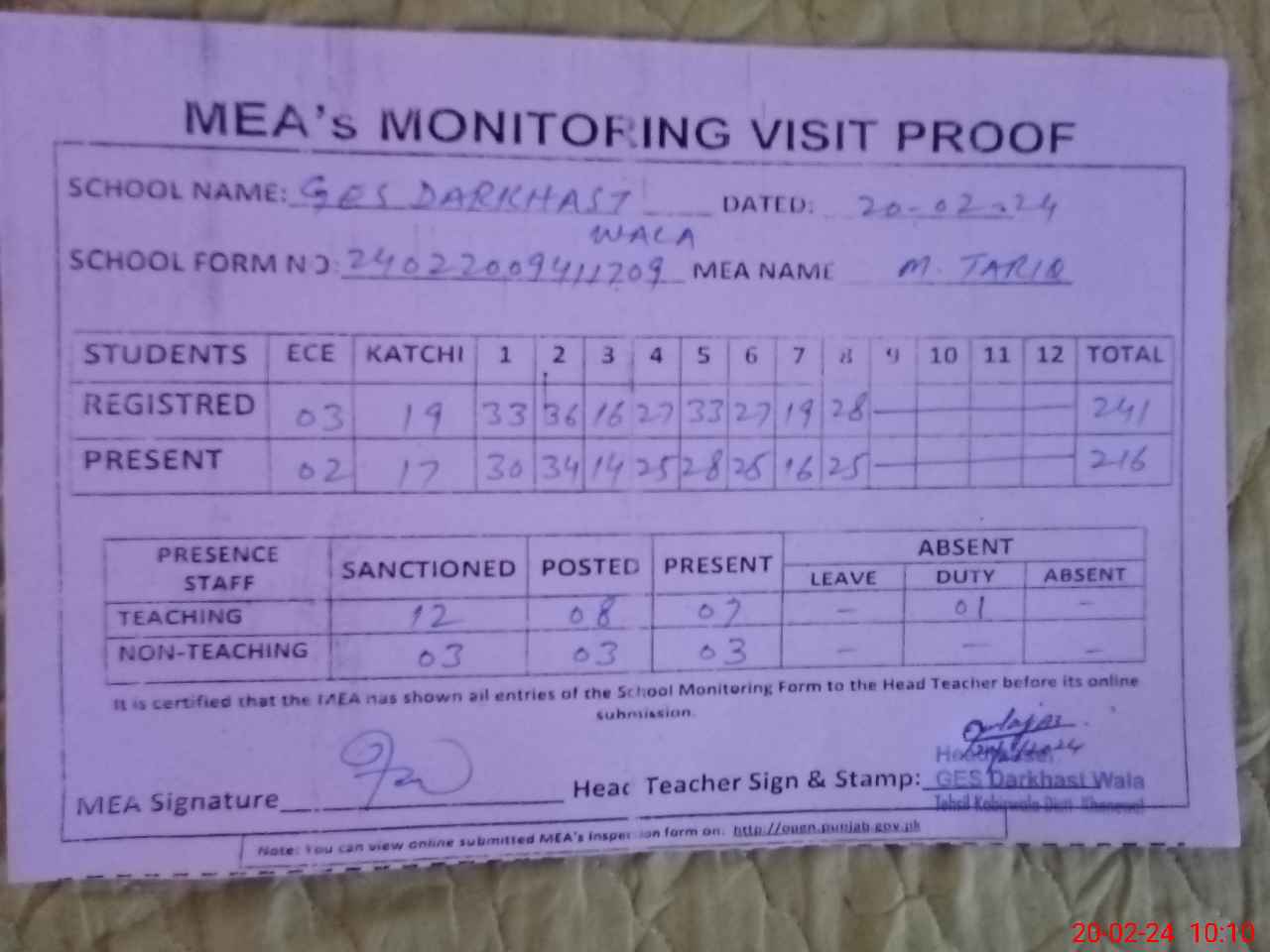 | EMIS Code: 36410051 | Name of School: GES DARKHAST WALA, KABIRWALA | |||
