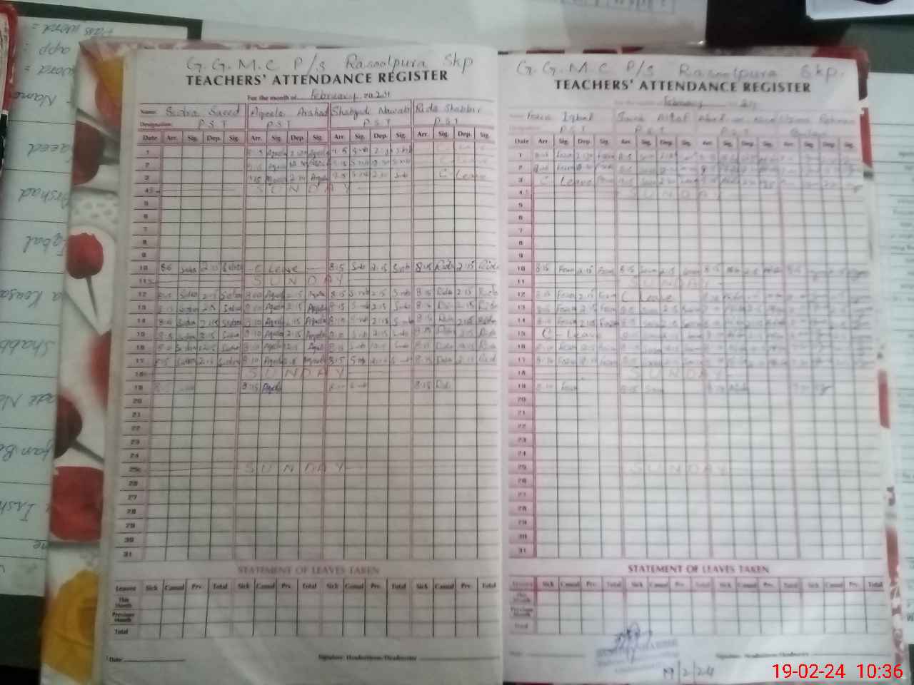 | Leave | Duty | Absent | Maternity | Medical | Ex- Pak |