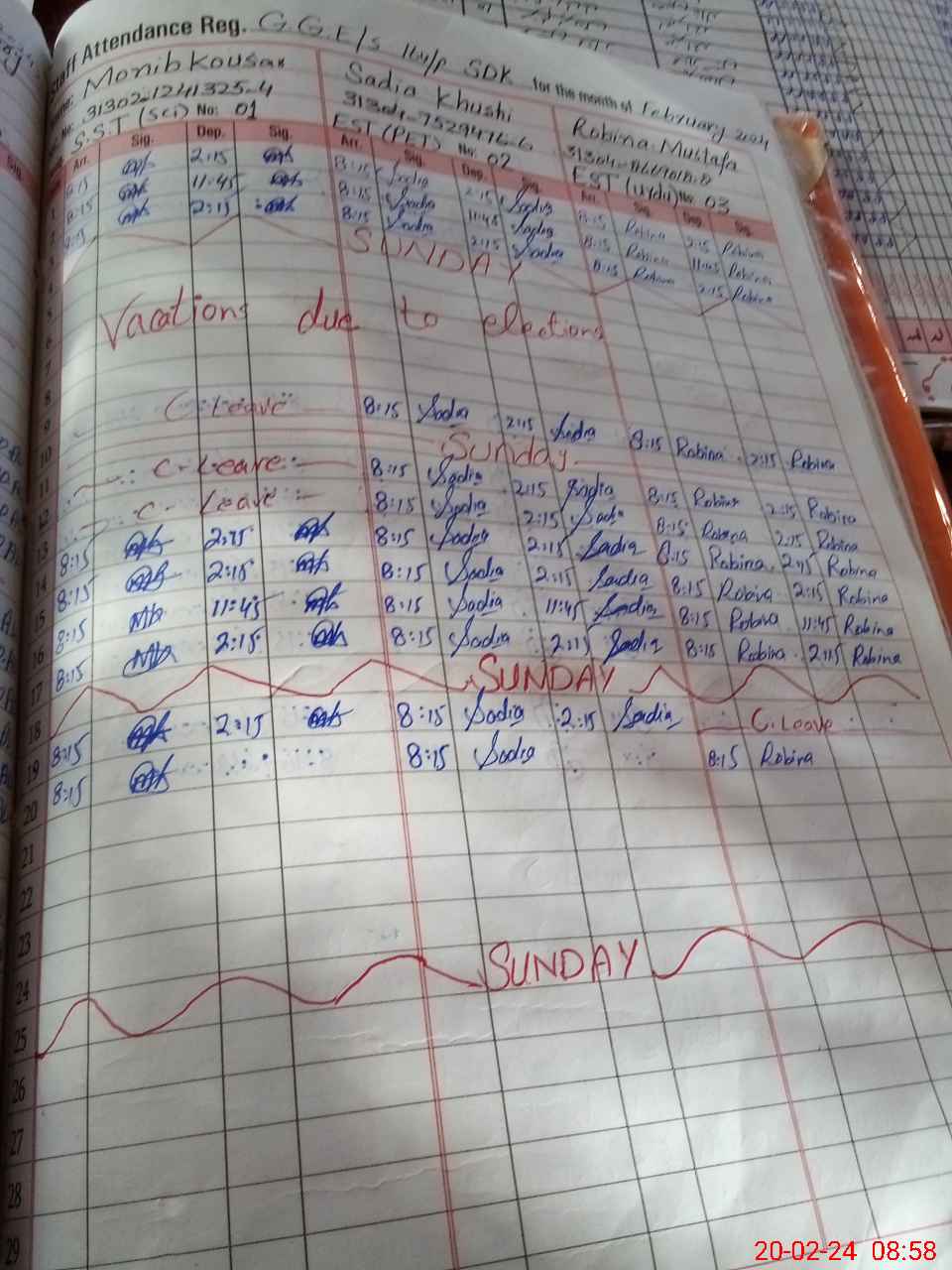 | CNIC | Full Name | Designation | R/C | Absence During Last Calender Month |