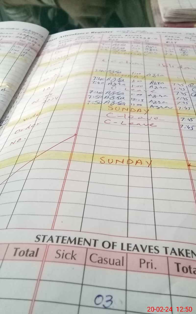 | Leave | Duty | Absent | Maternity | Medical | Ex- Pak |