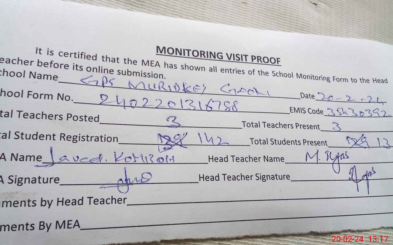 | EMIS Code: 35430392 | Name of School: GPS MURIDKEY GAON | |||