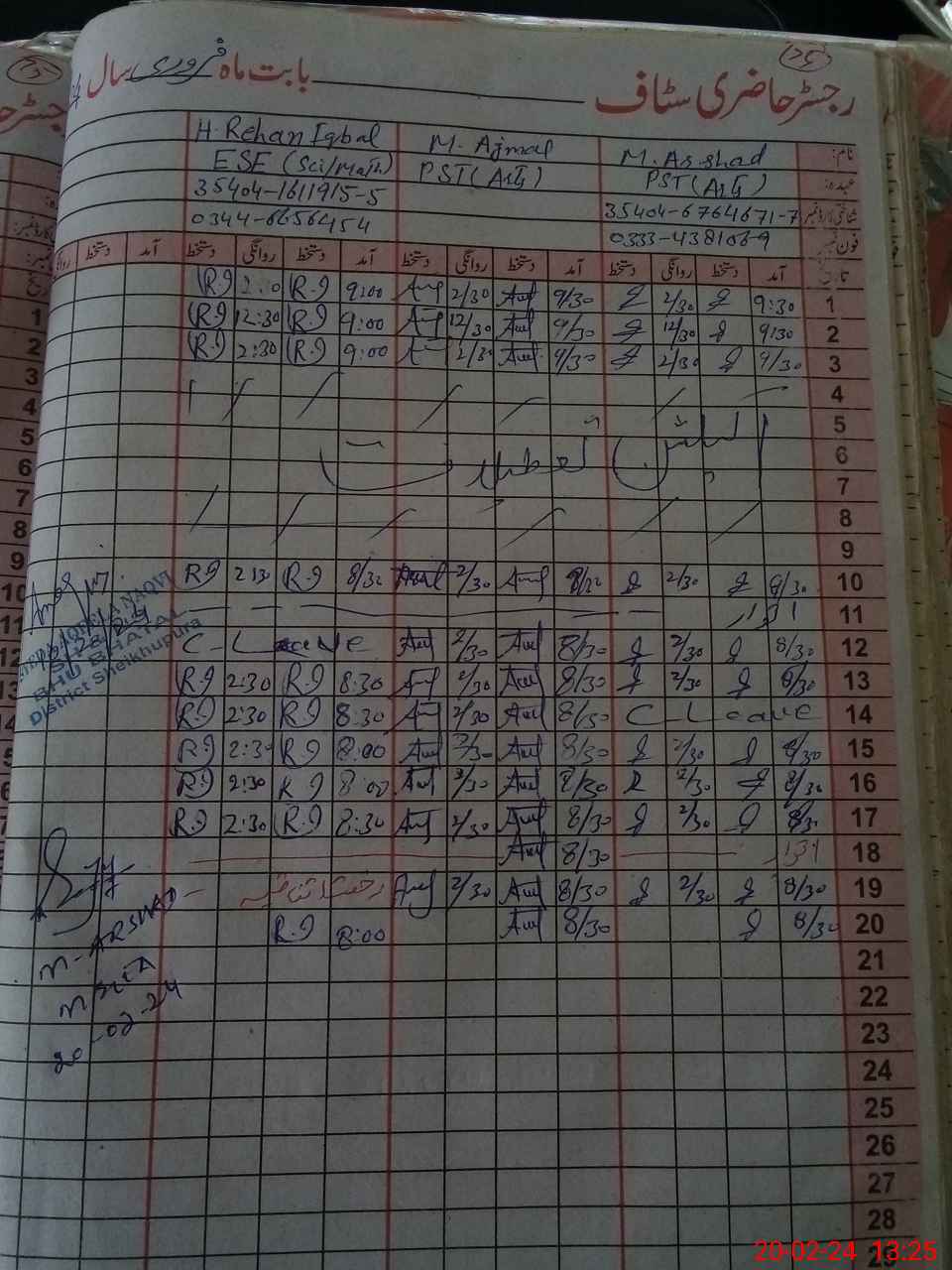 | Name: Ha**** Re**** Iq**** Designation: (School Headmaster's/Headmistress's) PST Phone/Cell Number: 03**** |