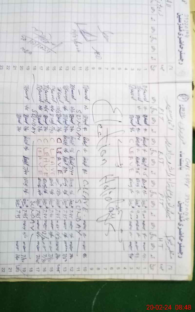 | CNIC | Full Name | Designation | R/C | Absence During Last Calender Month |