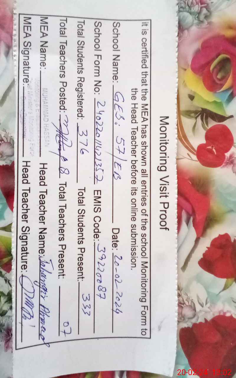 | EMIS Code: 39220087 | Name of School: GES 57 EB | |||