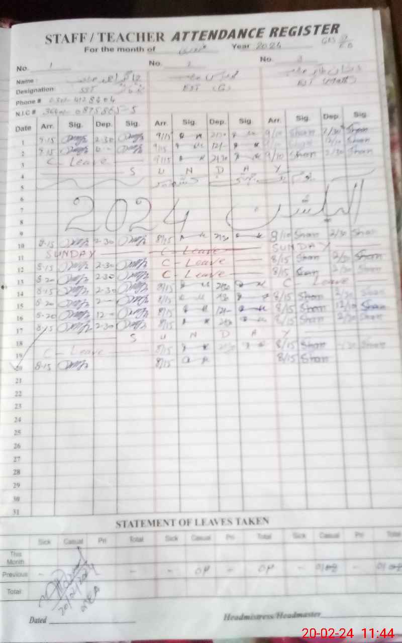 | Name: JA**** AH**** Designation: (School Headmaster's/Headmistress's) S.S.T.(GENERAL) Phone/Cell Number: 03**** |