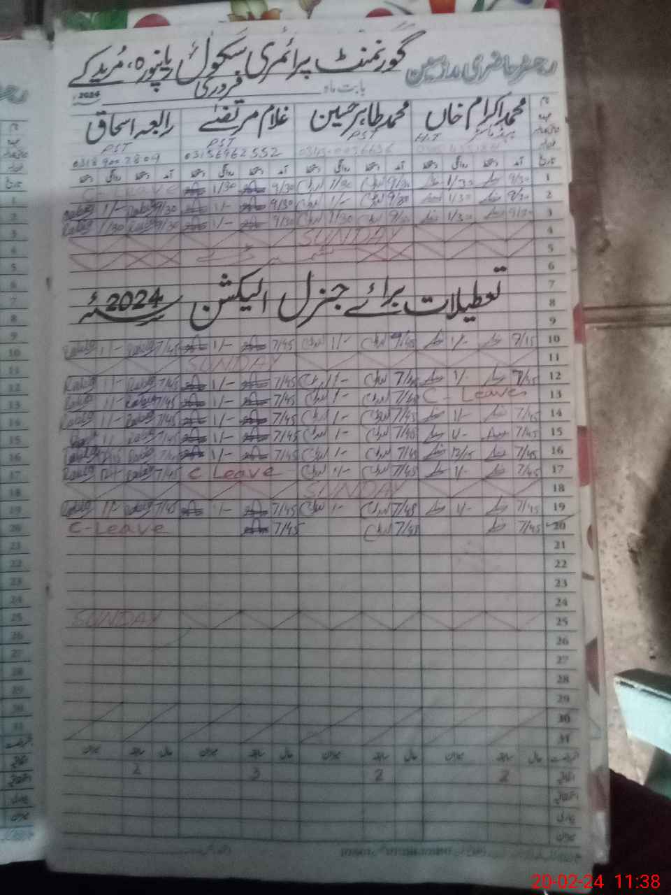 | Name: Mu**** Ik**** Kh**** Designation: (School Headmaster's/Headmistress's) PTC/JV Phone/Cell Number: 03**** |