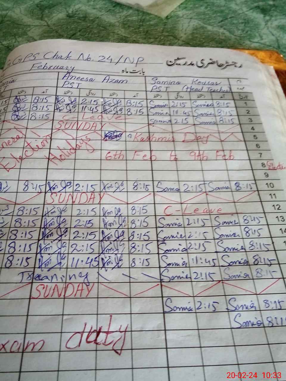 | 31**** | Sa**** Ko**** | 1 | 1 | 0 | 0 | 0 | 0 | 0 | 0 | 0 | 0 | 0 | Exam Duty |