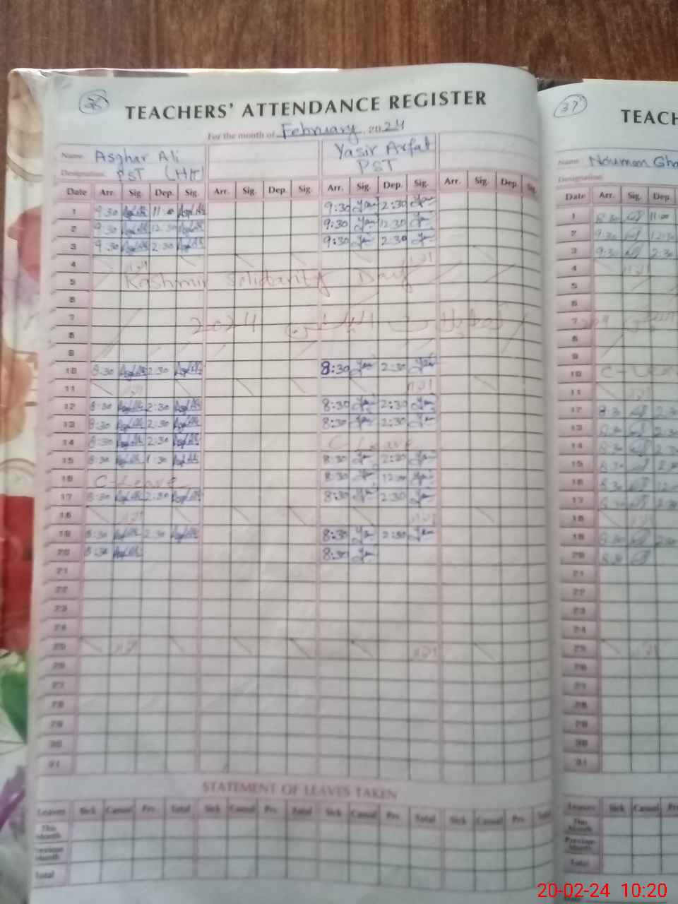 | Leave | Duty | Absent | Maternity | Medical | Ex- Pak |