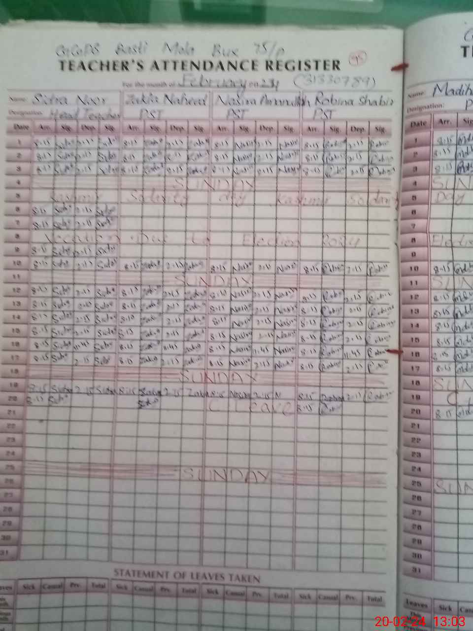 | Leave | Duty | Absent | Maternity | Medical | Ex- Pak |