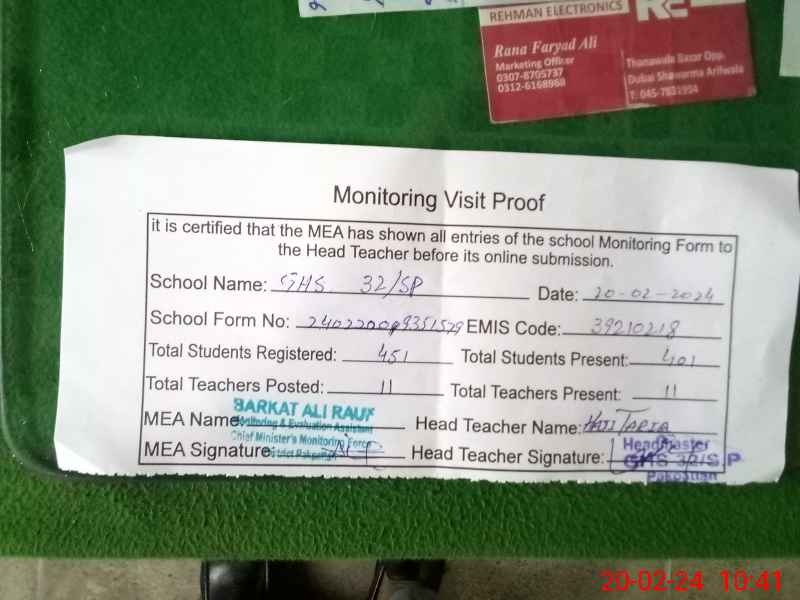 | EMIS Code: 39210218 | Name of School: GHS CHAK NO. 32 SP | |||