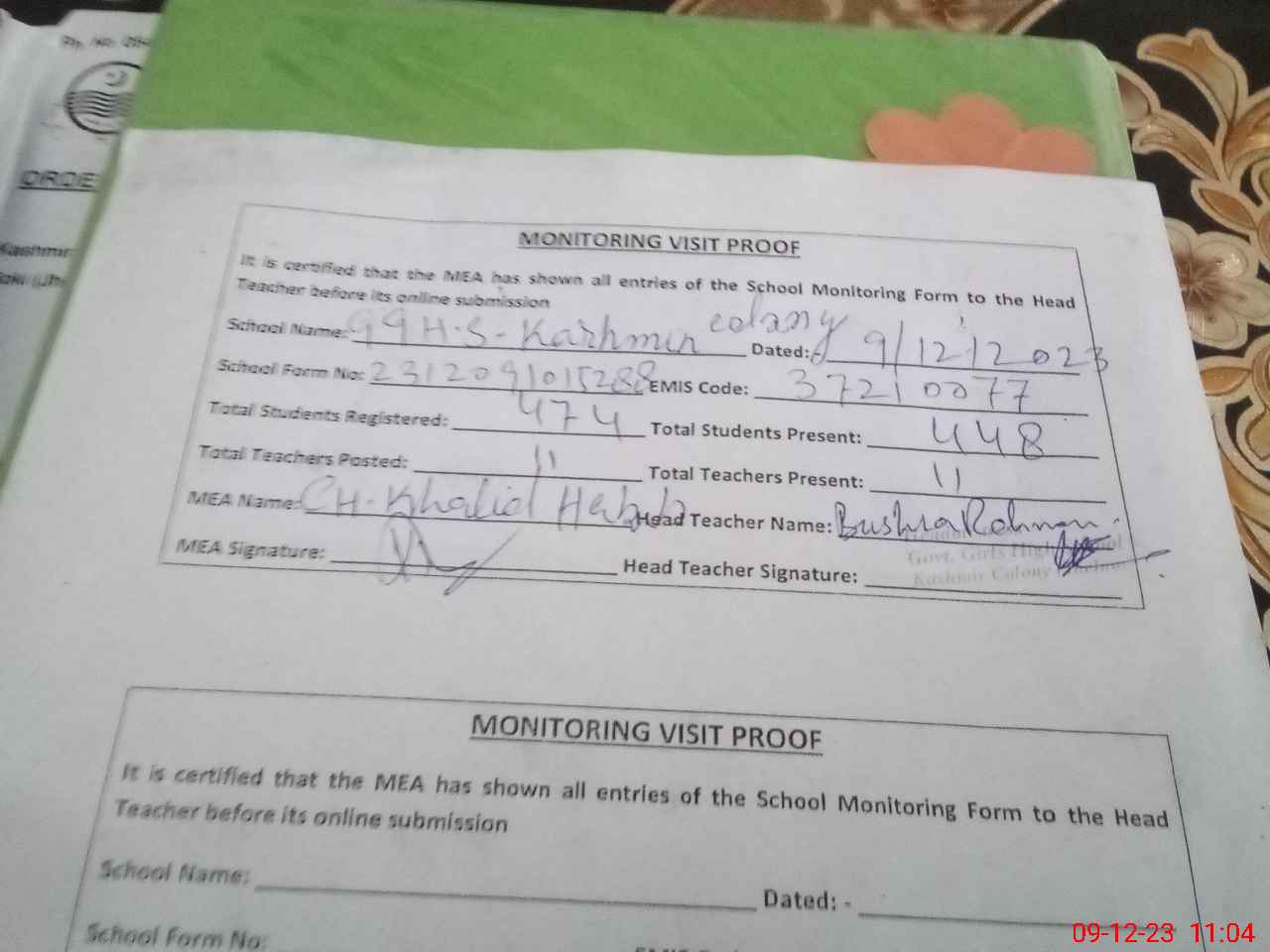 | EMIS Code: 37210077 | Name of School: GGHS KASHMIR COLONY | |||
