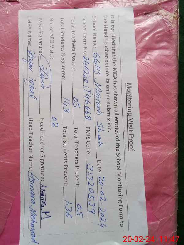 | EMIS Code: 31320539 | Name of School: GGPS DARBAR MAJEOH SHAH | |||