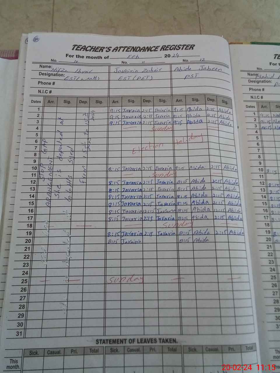 | 37**** | Hi**** Ib**** | 3 | 1 | 0 | 0 | 0 | 0 | 0 | 0 | 0 | 0 | 0 | Absent (Un-Authorized) |