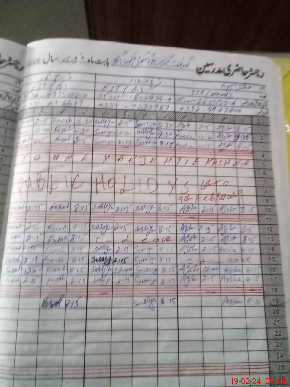 | 35**** | Ma**** Ak**** | Regular | 0 | 1 | 0 | 0 | 0 | 0 | 0 | 0 | 0 | Exam Duty | |