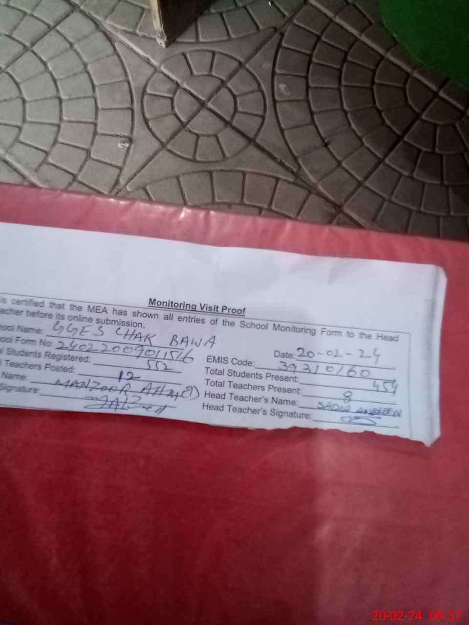 | EMIS Code: 39310160 | Name of School: GGES CHAK BAWA | |||