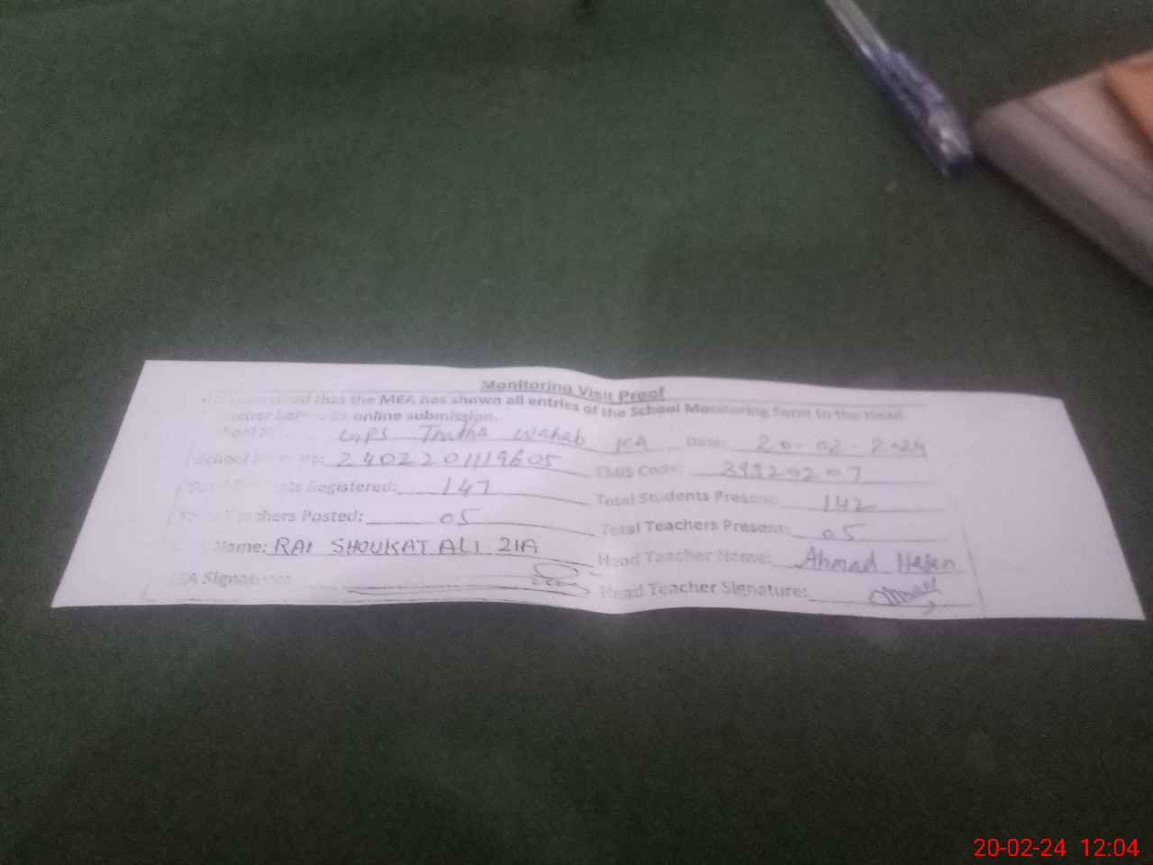 | EMIS Code: 39320207 | Name of School: GPS THATHA WAHAB KA | |||