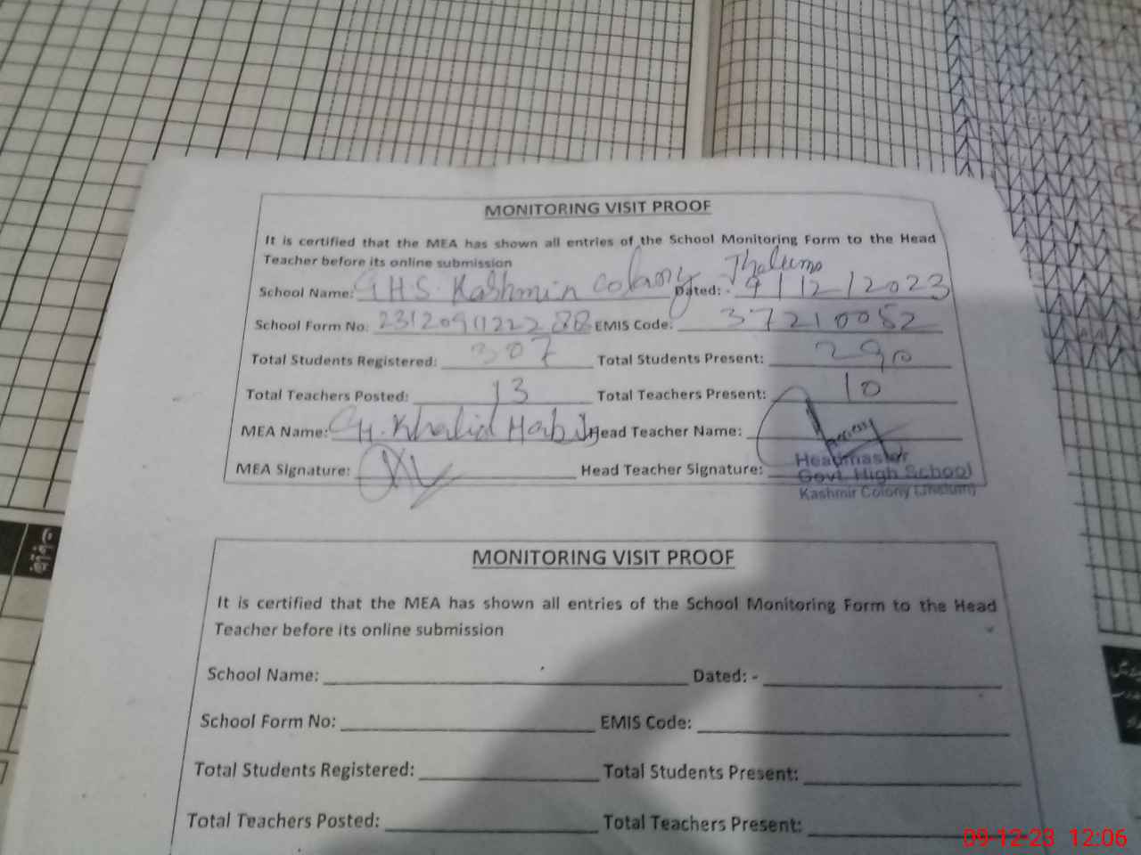 | EMIS Code: 37210052 | Name of School: GHS KASHMIR COLONY JHELUM | |||