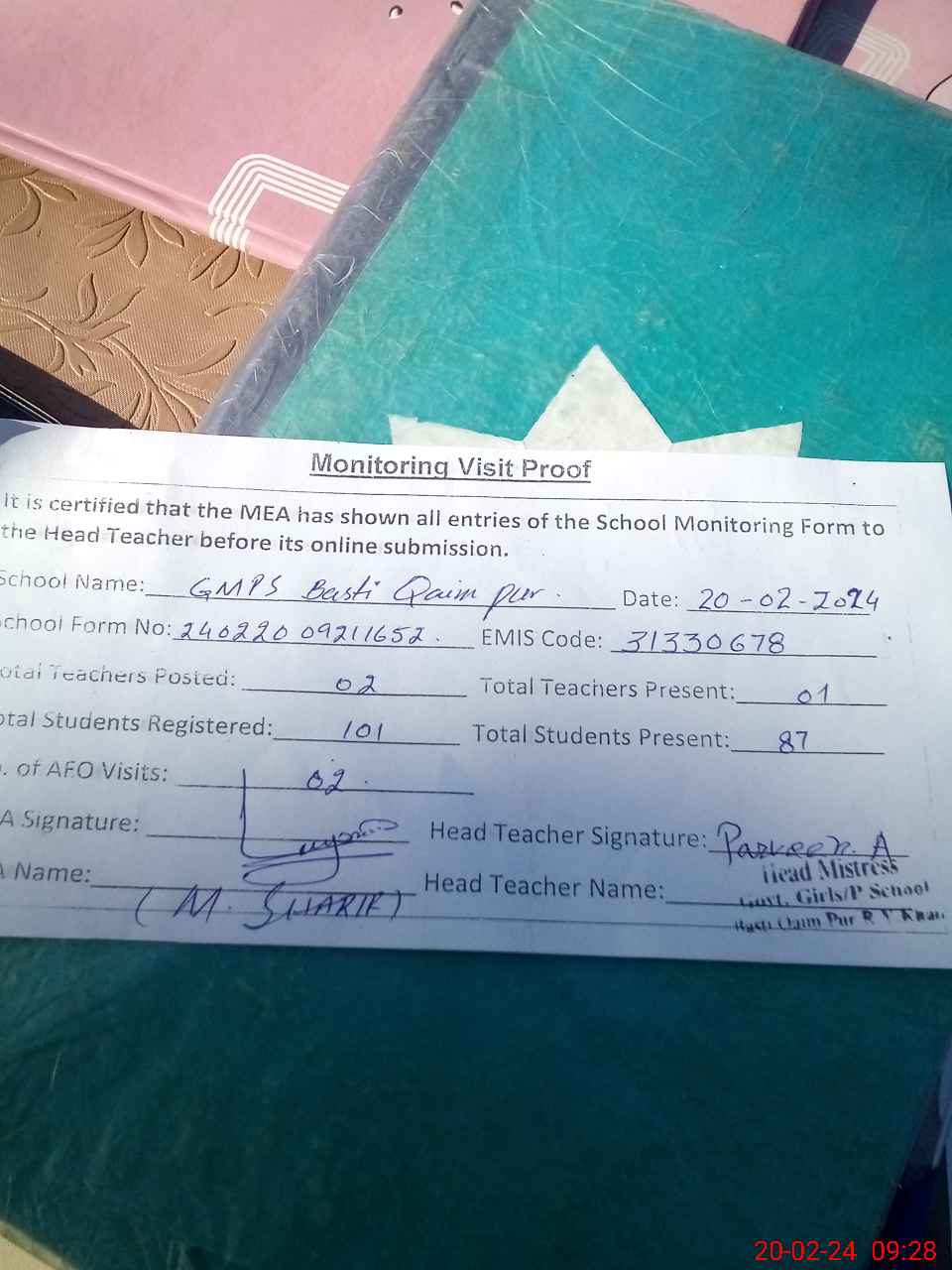 | EMIS Code: 31330678 | Name of School: GMPS BASTI QAIM PUR | |||