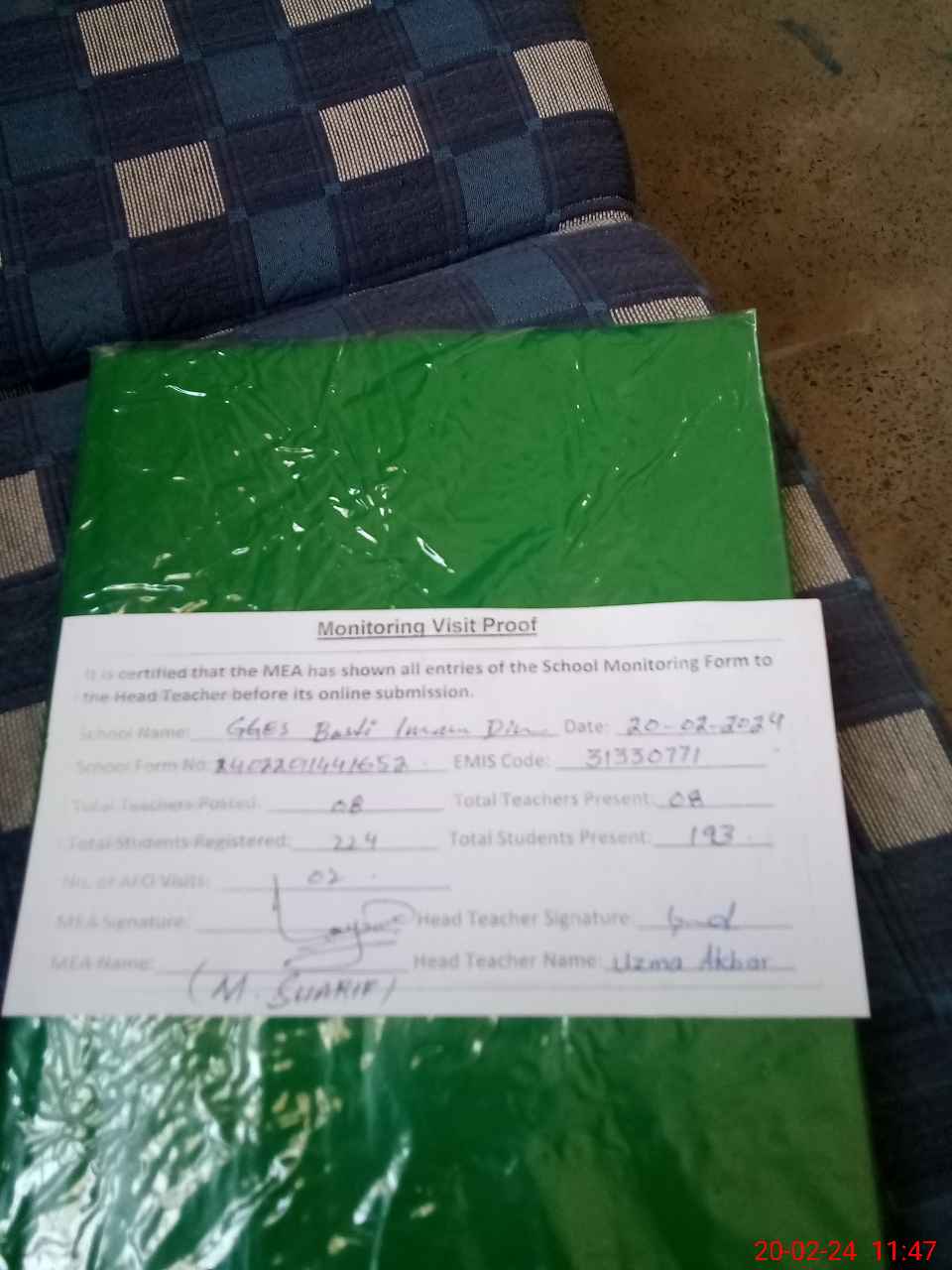 | EMIS Code: 31330771 | Name of School: GGES BASTI IMAM DIN | |||