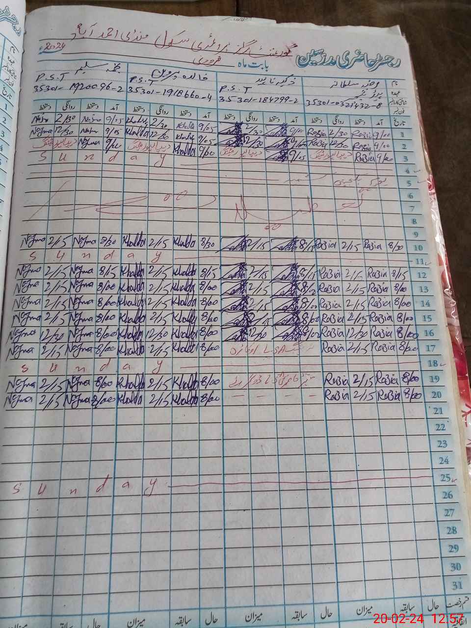 | 35**** | Za**** Na**** | 1 | 1 | 0 | 0 | 0 | 0 | 0 | 0 | 0 | 0 | 0 | Exam Duty |
