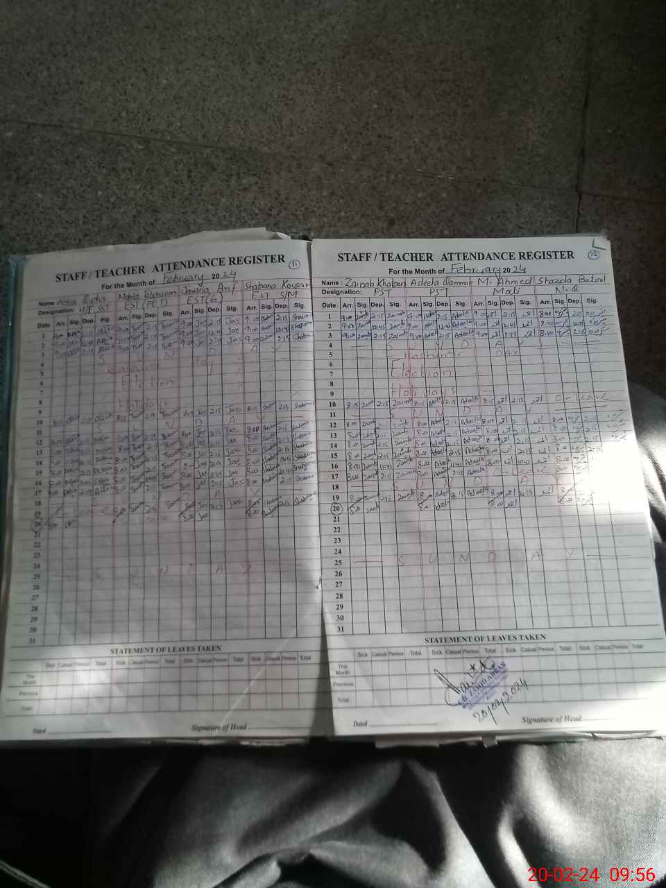 | Monitoring Date: 20-02-2024 | Start Time: 20-02-2024 09:14 AM | End Time: 20-02-2024 10:02 AM | Name of MEA: Za**** Ab**** | |