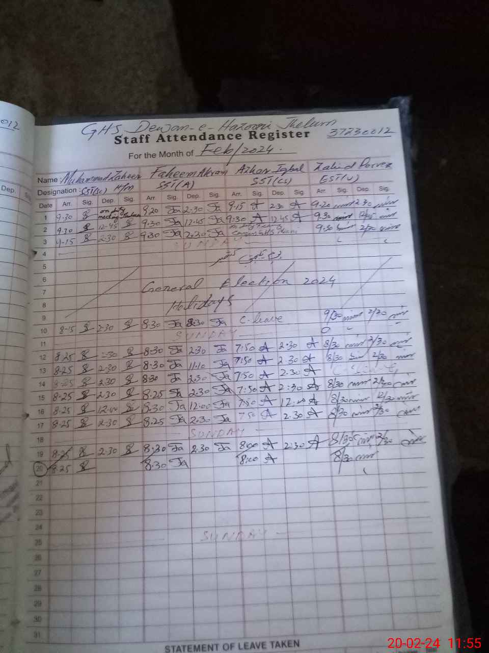 | Name: Mu**** Za**** Designation: (School Headmaster's/Headmistress's) HEADMASTER Phone/Cell Number: 03**** |