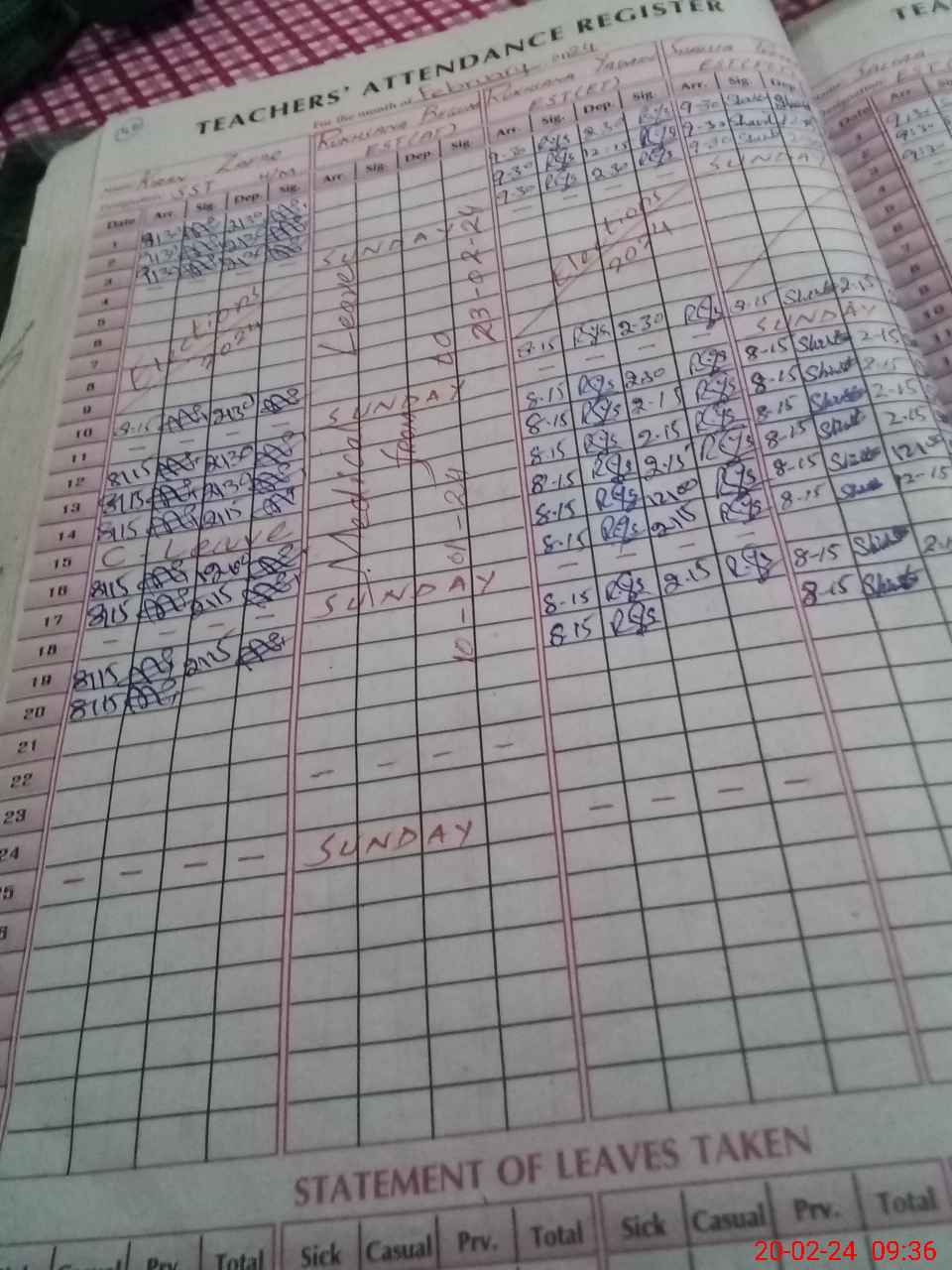 | No. of Students Present - Female | 34 | 0 | 38 | 40 | 56 | 34 | 66 | 42 | 98 | 82 | 80 | 570 | ||||
