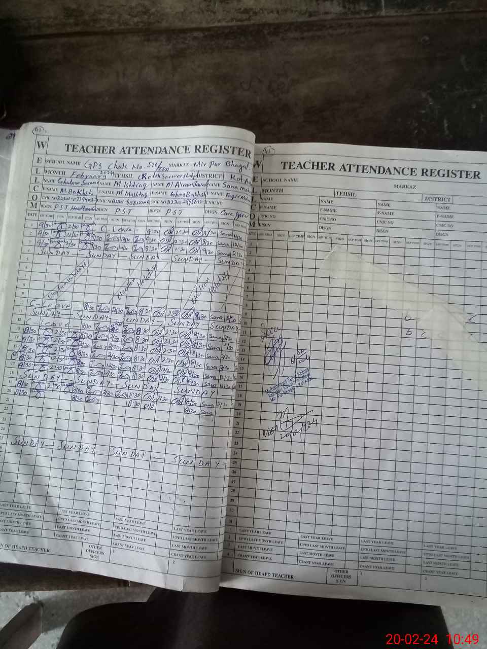 | CNIC | Full Name | Designation | R/C | Absence During Last Calender Month |