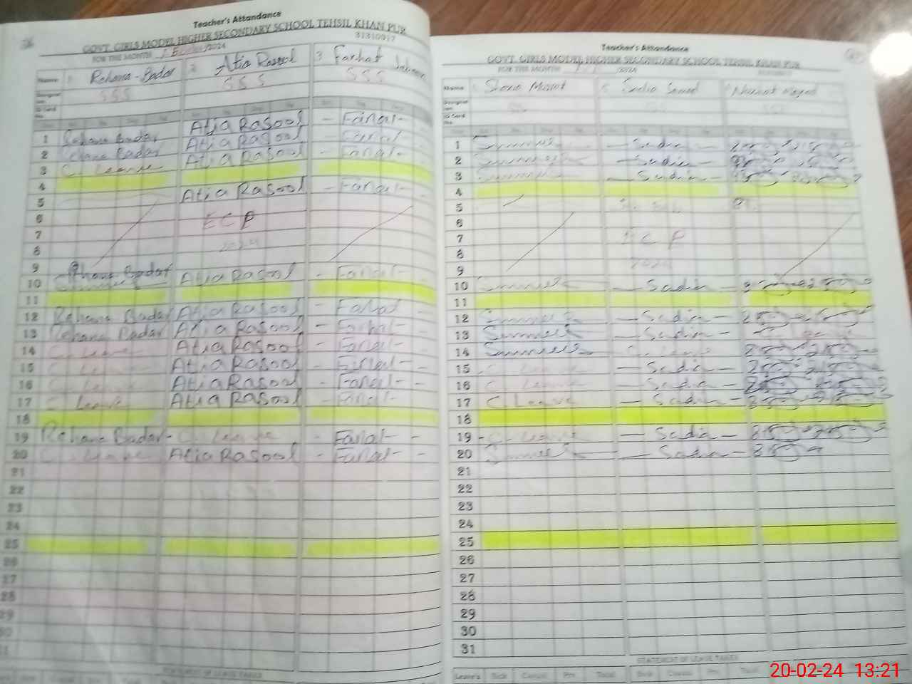 | CNIC | Full Name | Designation | R/C | Absence During Last Calender Month |