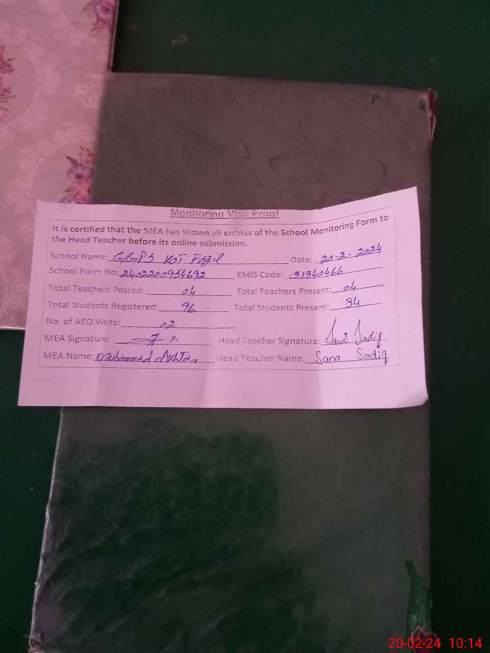 | EMIS Code: 31340466 | Name of School: GGPS KOT FAZIL | |||
