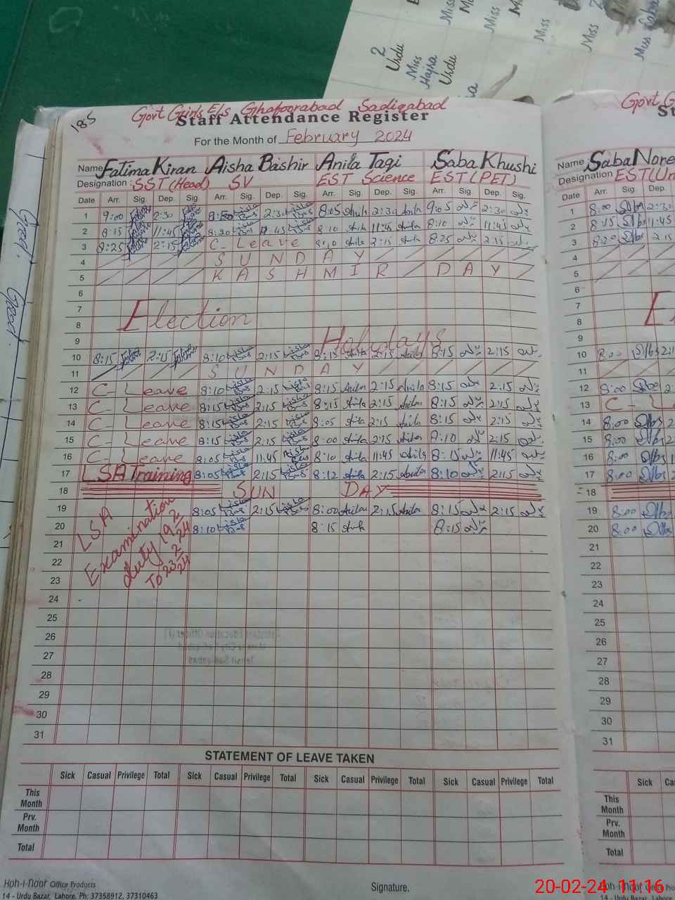 | 31**** | Fa**** Ki**** | 2 | 18 | 0 | 0 | 18 | 0 | 0 | 0 | 0 | 0 | Exam Duty | |