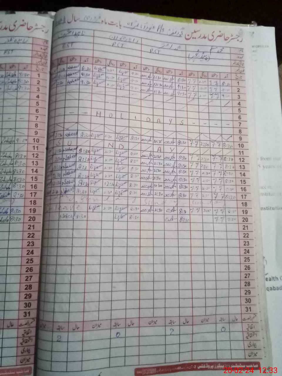 | CNIC | Full Name | Designation | R/C | Absence During Last Calender Month |