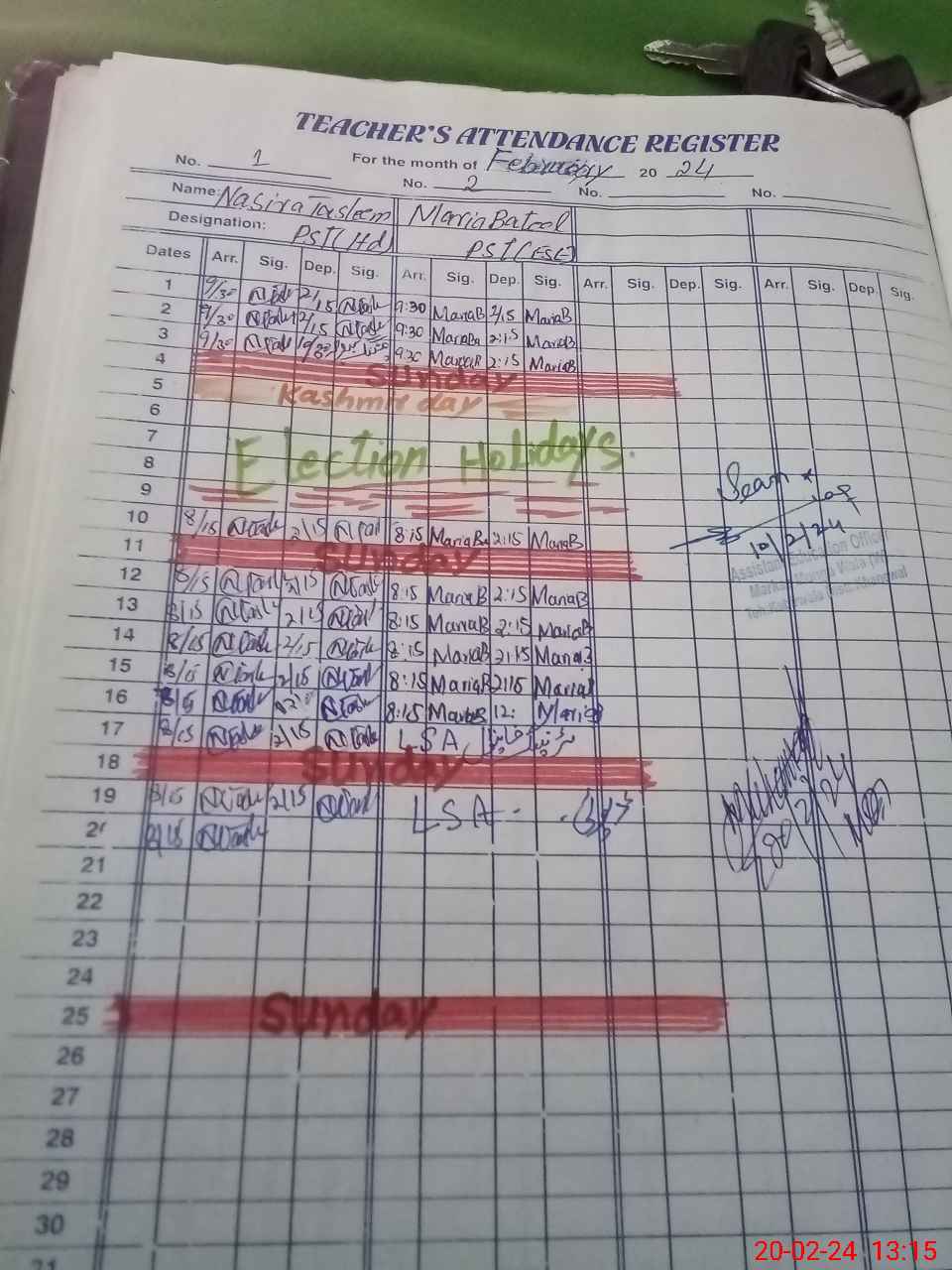 | 36**** | Ma**** Ba**** | 1 | 1 | 0 | 0 | 0 | 0 | 0 | 0 | 0 | 0 | 0 | Exam Duty |