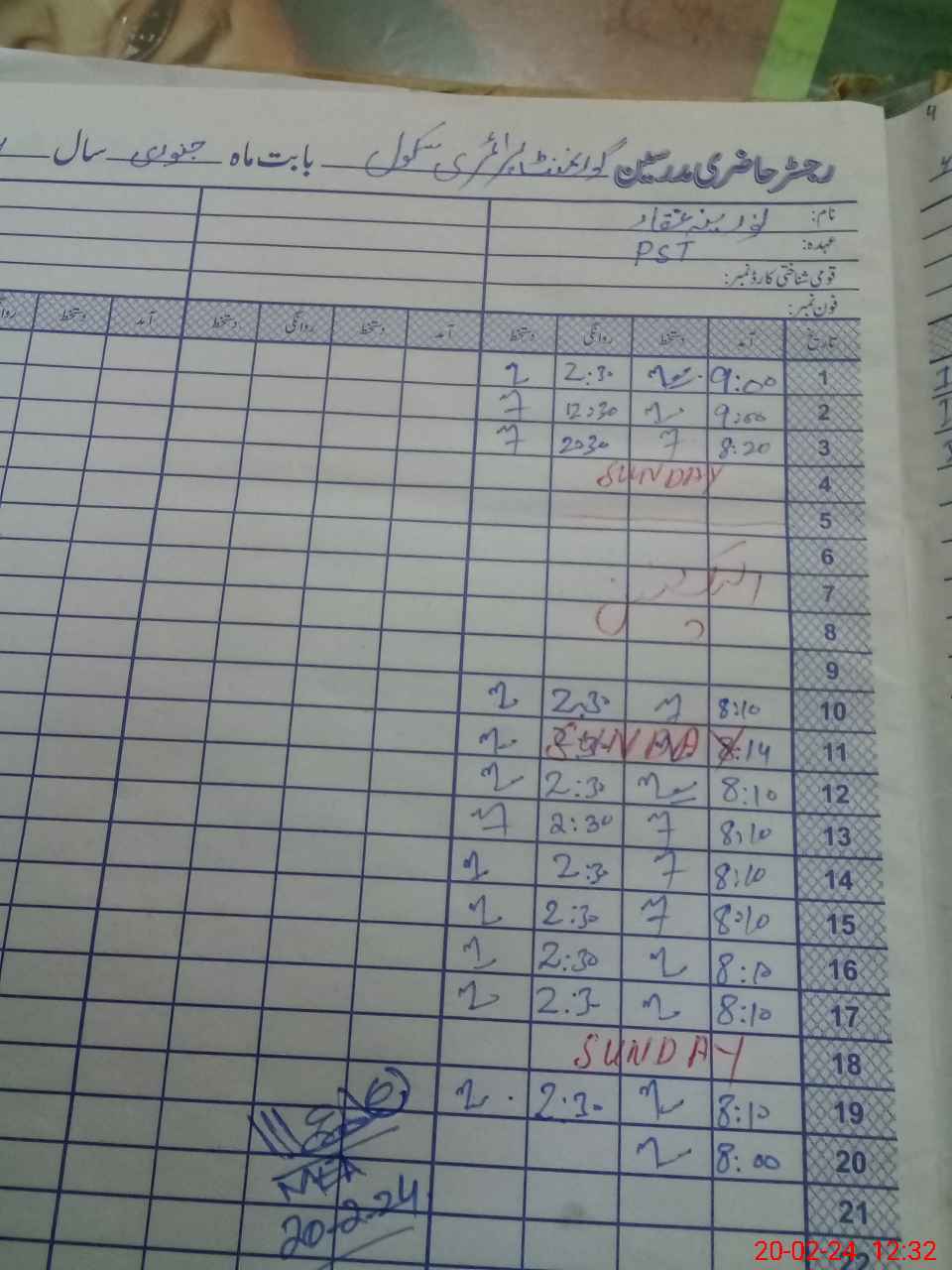 | Name: MU**** Sh**** Designation: (School Headmaster's/Headmistress's) PST Phone/Cell Number: 03**** |