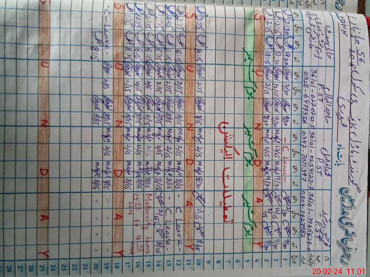 | Leave | Duty | Absent | Maternity | Medical | Ex- Pak |