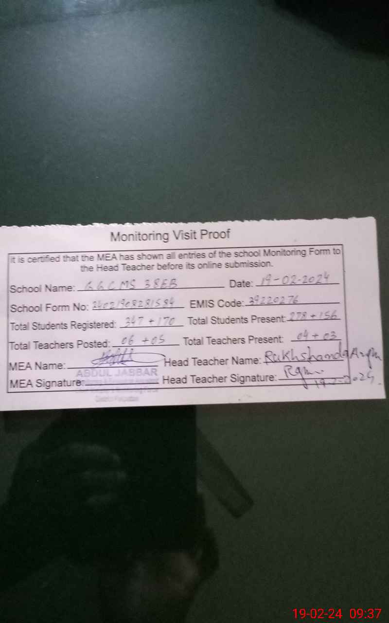 | Certified that this School was Inspected by the Undersigned MEA/DMO Today and the Information Stated Above is as Per Record. | |||||